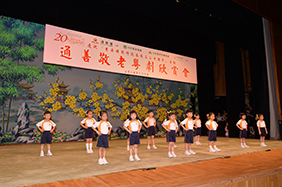 本 會 每 年 均 於 香 港 大 會 堂 舉 辦 「 通 善 敬 老 粵 劇 欣 賞 會 」 招 待 壹 仟 伍 佰 位 六 十 五 歲 或 以 上 長 者 , 免 費 欣 賞 豐 富 節 目 ,是 次 活 動 請 了 靈 恩 學 校 一 班 同 學 在 粵 劇 正 式 演 出 前 , 表 演 朗 誦 、 唱 誦 、 手 語 演 繹 及 演 唱 環 節 。 劇 目 方 面 邀 請 到 粵 劇 班 霸 「 鳴 芝 聲 劇 團 」 演 出 「 三 笑 姻 緣 」 , 並 由 粵 劇 名 伶 蓋 鳴 暉 小 姐 及 吳 美 英 小 姐 擔 綱 演 出 , 劇 團 演 出 精 湛 。 長 者 們 歡 度 一 個 既 溫 馨 又 愉 快 的 晚 上 。